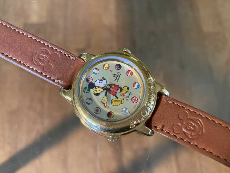 Vintage Lorus Quartz Musical Mickey Mouse Wrist Watch Countries Face Leather Band