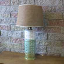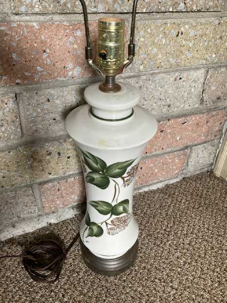 Vintage Ceramic Table Lamp Hand Painted Green Ivy Gold Leaf White Base by Lola Needs New Plug