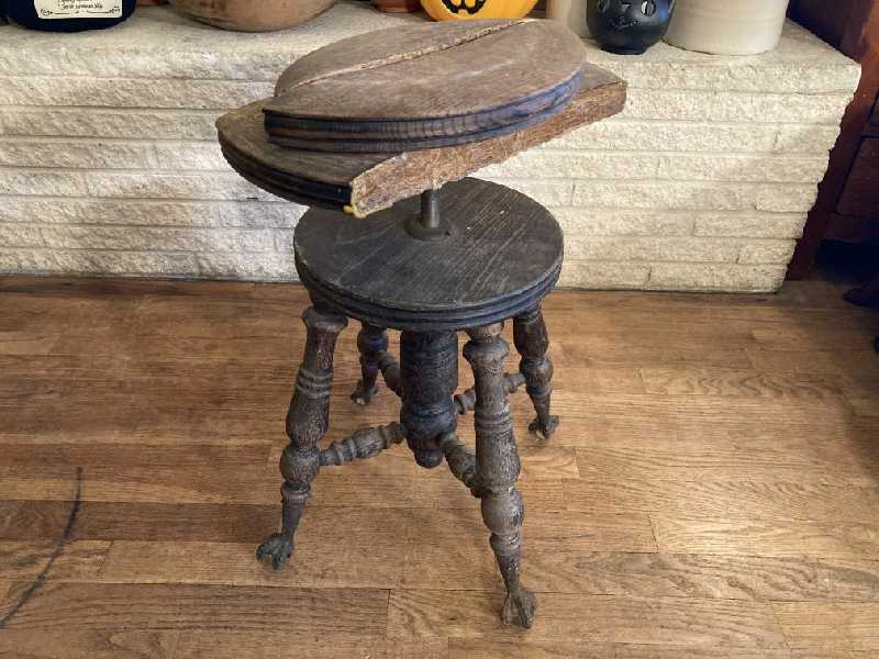 Antique Piano Stool Glass Eagle Claw Feet For Repair Restoration Seat Split Needs Regluing