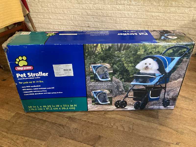 Top Paw Folding Pet Stroller Front Shocks Rear Brakes Unused in Open Box For Small Pets To 20 lbs